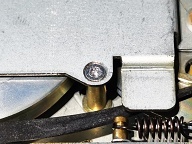 SD-L10 cassette mechanism with pulleys missing belts and stripped screw highlighted